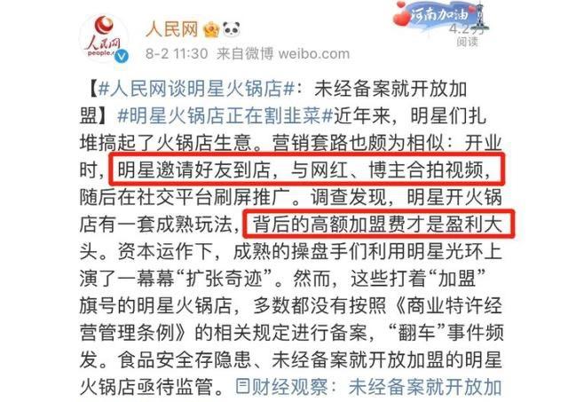 明星扎堆进入,品牌加速跑马圈地,有些品牌甚至没有备案就开始加盟了。8月2日,人民网发文直指打着“加盟”旗号的明星火锅店,多数都没有按照《商业特许经营管理条例》的相关规定进行备案,“翻车”事件频发。