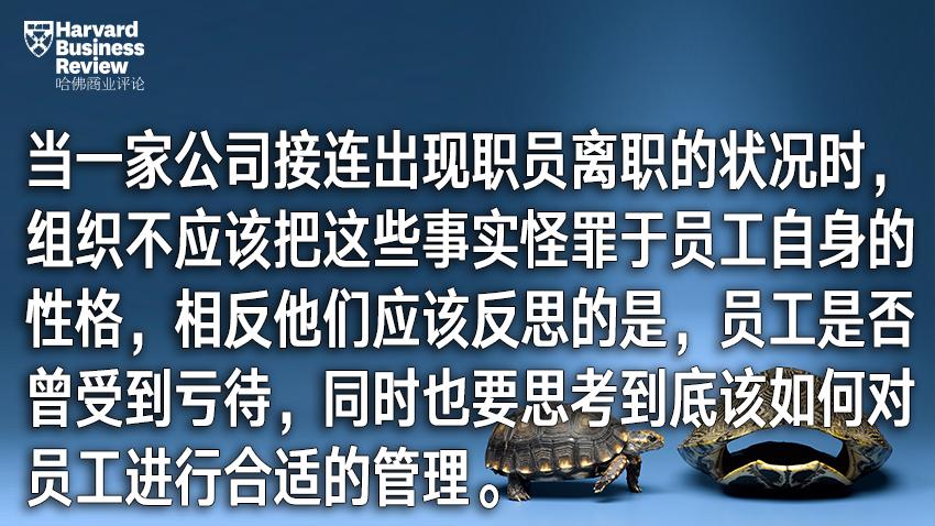 除此以外,我们的研究也给公司领导者和人力资源主管上了一堂课。当一家公司接连出现职员离职的状况时,组织不应该把这些事实怪罪于员工自身的性格,相反他们应该反思的是,员工是否曾受到过公司的亏待,同时也要思考到底该如何对员工进行“合适的”管理。