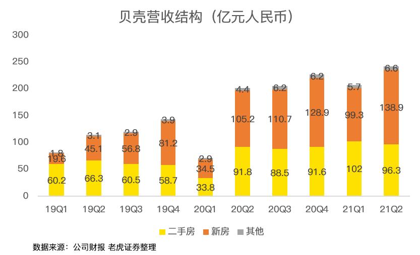 从数据上看,似乎贝壳摊上事了。但实际上,由于去年一季度爆发新冠疫情,造成二手房交易延后到二季度,因此造成了二季度净利润的高基数。今年二季度11亿的净利润,与去年四季度持平,并没有明显的下滑。因此,二季度净利润大降并不是贝壳财报后股价大跌的主要原因。但毛利率同过去的两个季度相比有所下滑,还是释放了不良信号。
