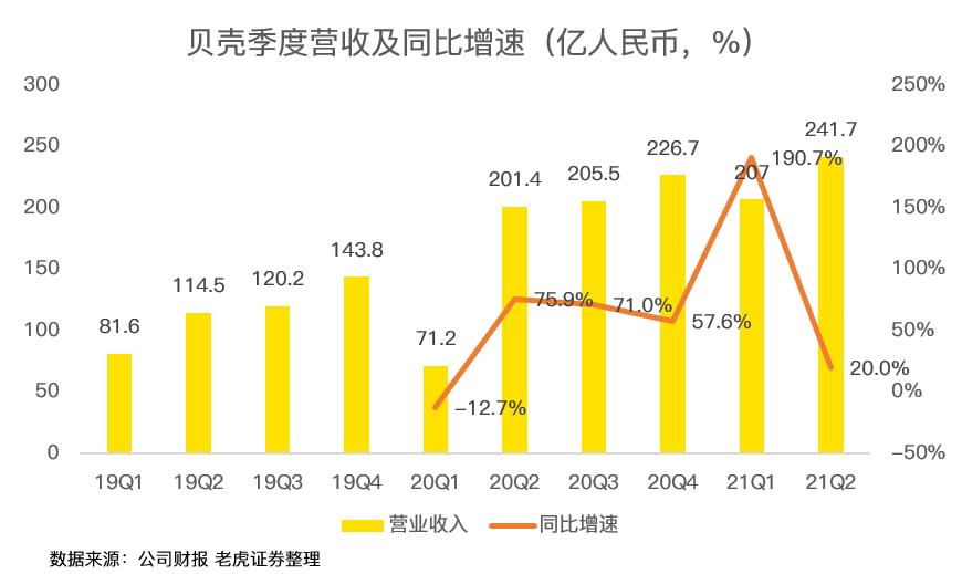 贝壳二季度营收241.7亿人民币,同比增长20%,超过一季度指引和市场预期。