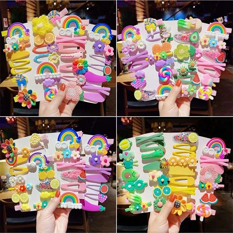 今年,旺业饰品以这种方式打造的儿童饰品获得了不错的销售成绩。以亮色为主色调的发夹,搭配花朵、西瓜、彩虹等可爱元素的图案,颇受家长与小朋友的喜爱。