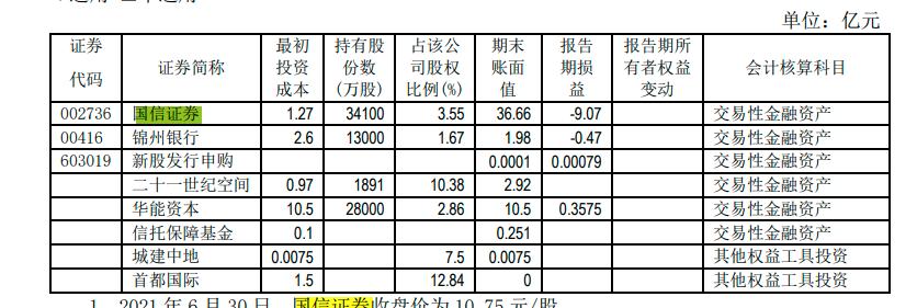城建发展如此大额的非经常损益从何而来?答案是股权投资。公司以公允价值计量的金融资产出现了较大变动,计提了10.32亿元的亏损,直接导致了非经常性损益的大幅度亏损。