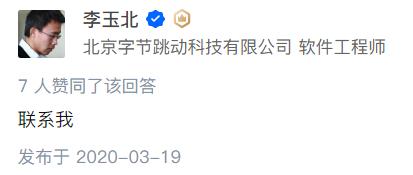 更有一个字节跳动员工只回答了一句“联系我”,居然也有七个点赞。