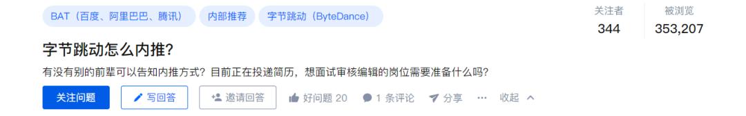 在我搜集资料时发现,最离谱的是一个阅读 35W 的问题,78 个回答中只有 4 个回答没有内推码。