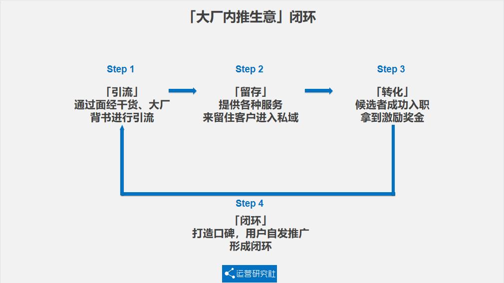 总结一下,成熟的“大厂内推产业链”完全可以用运营的思路去做, 主要包括以下环节: