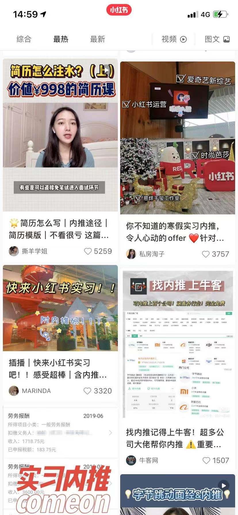 除了公众号,小红书作为“种草”社区,也是内推的重要阵地。在小红书搜索关键字“内推”,会跳出非常多高赞笔记: