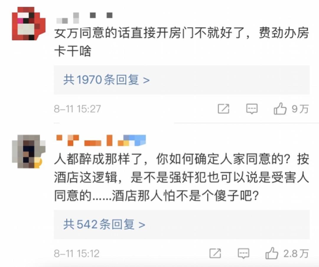 但是有网友质疑,要是涉事女员工处于醉酒状态并且呆在房间里,酒店前台是如何得到涉事女员工的授权呢?