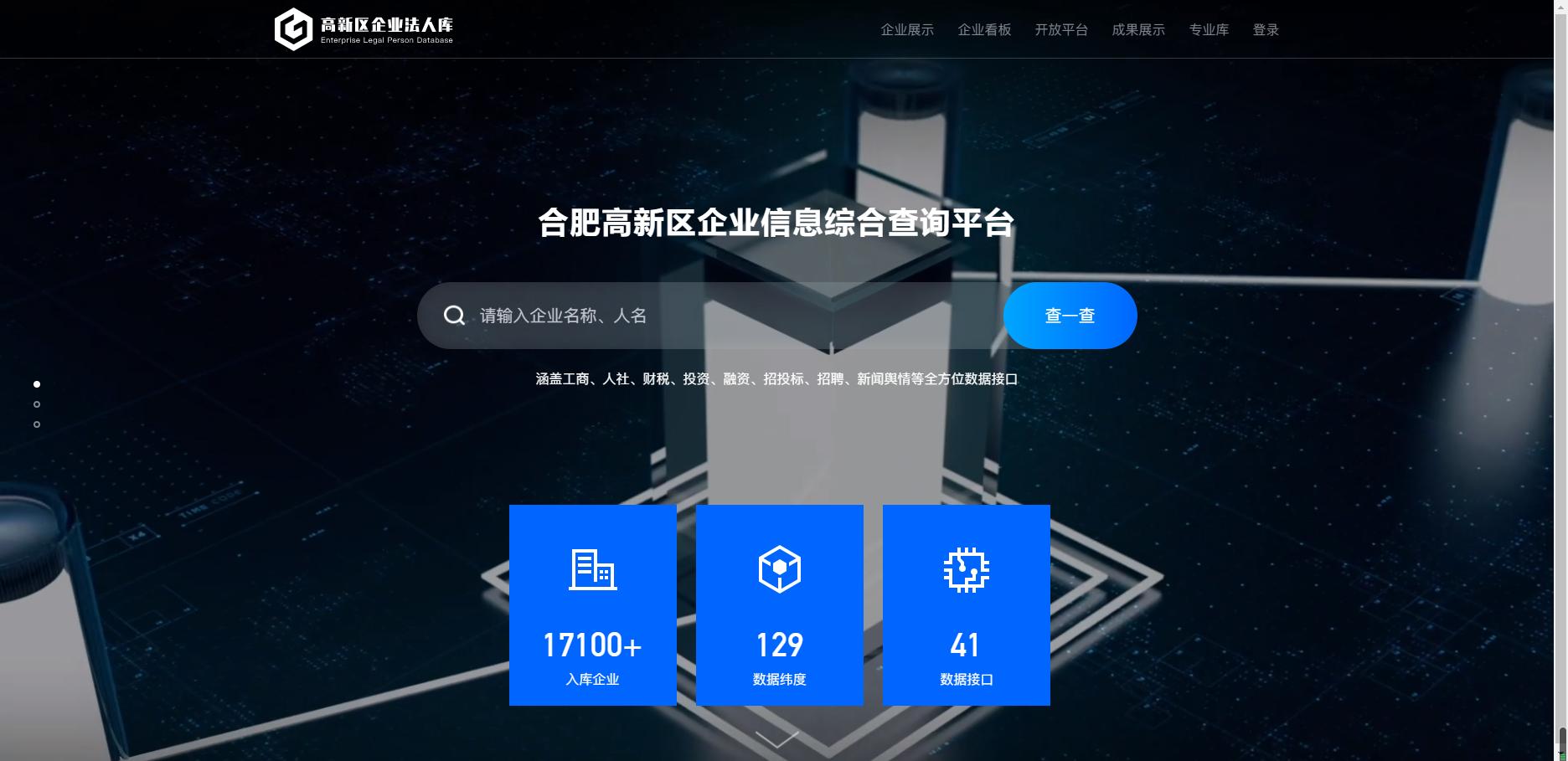 其落地案例高新区企业法人库平台帮助政府搭建企业法人库基础数据库,平台汇集工商、财税、人社、投资、融资司法、知识产权局等政务数据,对接可信第三方平台数据,同时整合历史数据,打造数据云共享。同时,平台也为政府部门掌握产业和企业发展状况,制定政策前线,摸清区域“数字经济”产业整体数据情况做有力支撑。