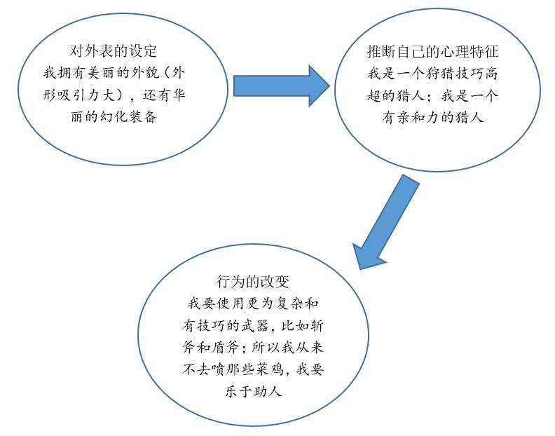 我们将化身看得等同于自己,把对自己的美好期待投射到化身,并暗示自己要表现出这些美好期待所匹配的优秀品质。化身美丽=化身狩猎技术好=我优秀。因此,玩家们不遗余力地花功夫去自定义化身,其实是为了满足对自己的期待。