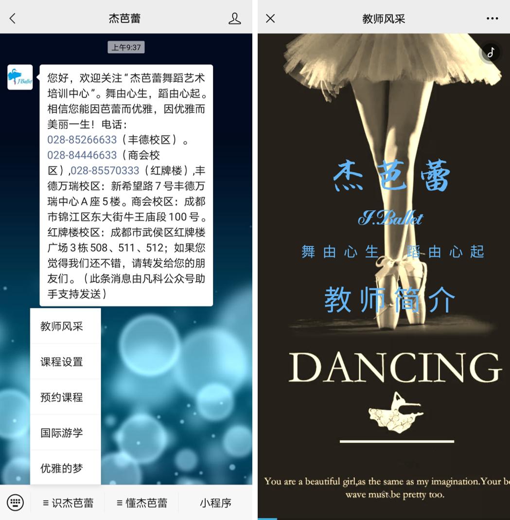 「杰芭蕾」市场负责人介绍,「在杰芭蕾里,连教学的老师也要兼顾客户运营,因此每个人身兼多职的现象十分常见。因此对于运营工具的选择必须要足够简单,不用花太多的时间去学习且人人都能运营管理,这也是为什么我们选使用凡科一系列产品的原因。」