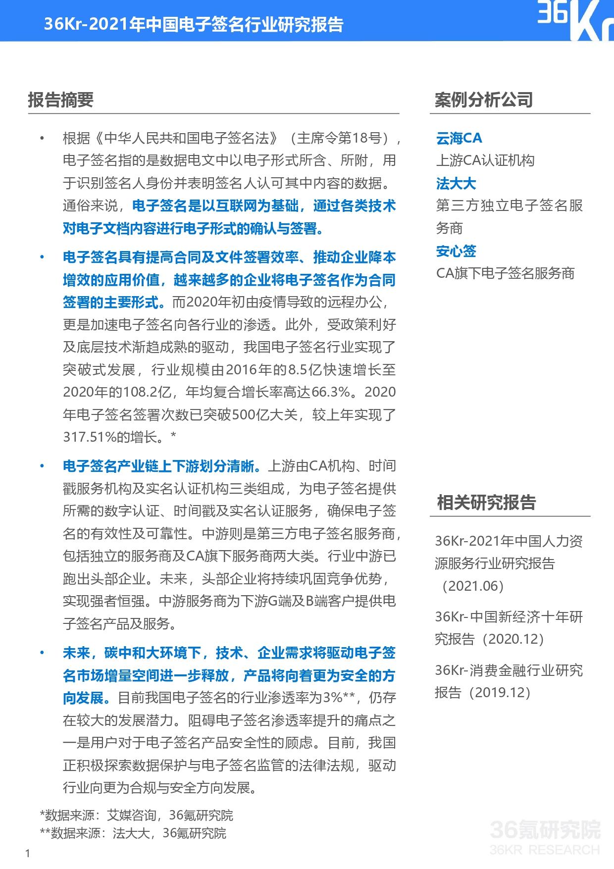 36氪研究院 | 2021年中国电子签名行业研究报告