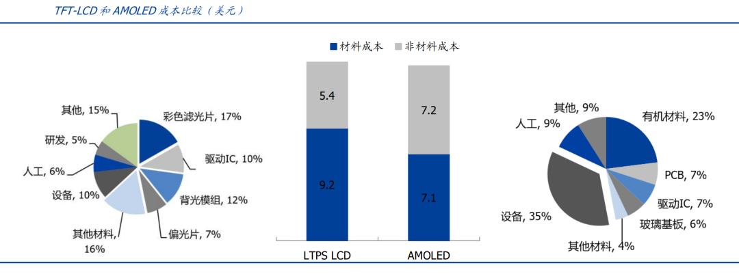 就比如在OLED领域,上游OLED材料大约要占整个OLED面板成本的20%-30%,主要包括有机发光材料、电极材料、各类偏光片和封装胶等等。
