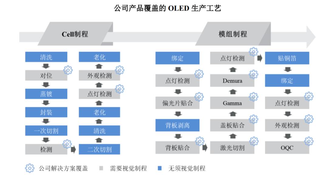 ▲凌云光产品覆盖的OLED生产工艺主要集中在Cell制程和模组制程部分