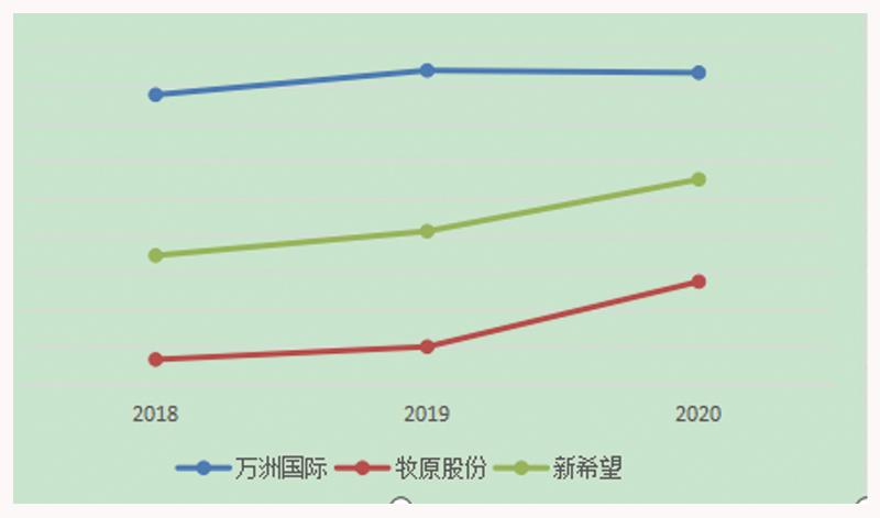 新希望营收分别为690.63亿元、820.51亿元、1098亿元,同比增长10.38%、18.81%、33.85%,表现也明显好于万洲国际。