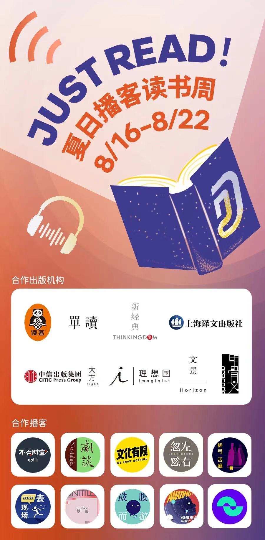 但是好在我们也可以云逛书店——JustPod联合了单读、理想国、上海译文等8家出版机构和11家播客的主播们,将开启一个夏日播客读书周,于8月16-22日的这7天里,在微信视频号直播16场不同主题的对谈活动。大家平常只听过声音的各大播客主播们将用视频的形式与你见面,也与同行和出版界的编辑们一起谈笑风生。来看看做书人和播客人将会如何脑力激荡、碰撞出别样的思想火花吧。