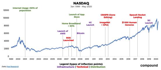 很多时候在最合适的时机进入市场会比技术本身更重要。有一句话说,伟大的企业总是在经济低潮期时建立。经济低潮期有一个先天选择性的作用,会让市场自然淘汰掉很多竞争对手,让资本和资源更加集中,更多地向头部企业去集中,这也可以帮助这些企业可以更快地成长为下一代的领军机构。