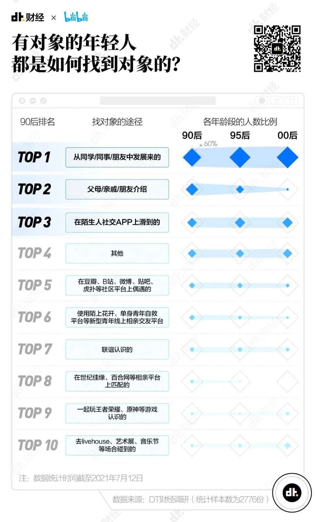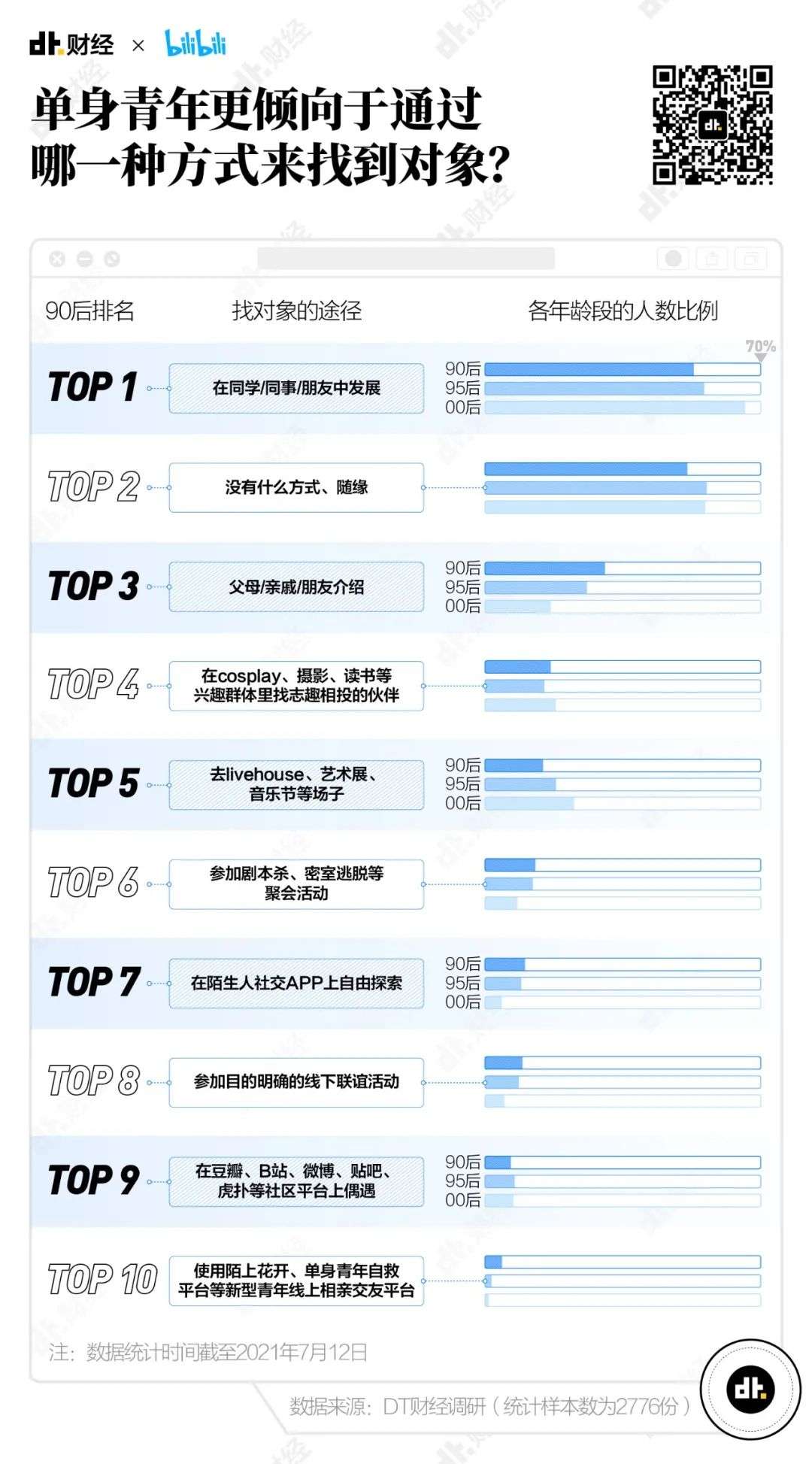 在00后单身青年中,“去livehouse、艺术展、音乐节等场子”找对象的比例已经达到22.5%,超过了“父母/亲戚/朋友介绍”(16.7%)。