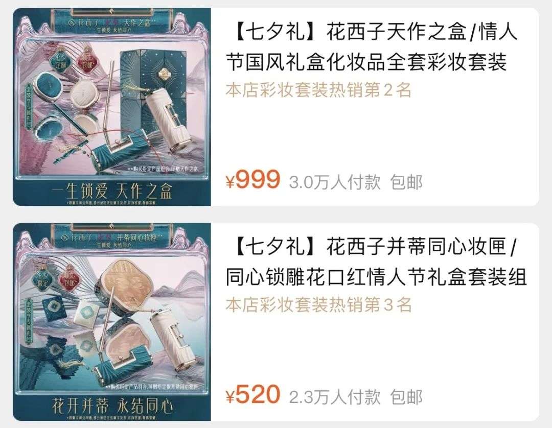 最早“玩”礼盒的国货品牌是完美日记,花西子将这个营销/销售方法发扬光大。