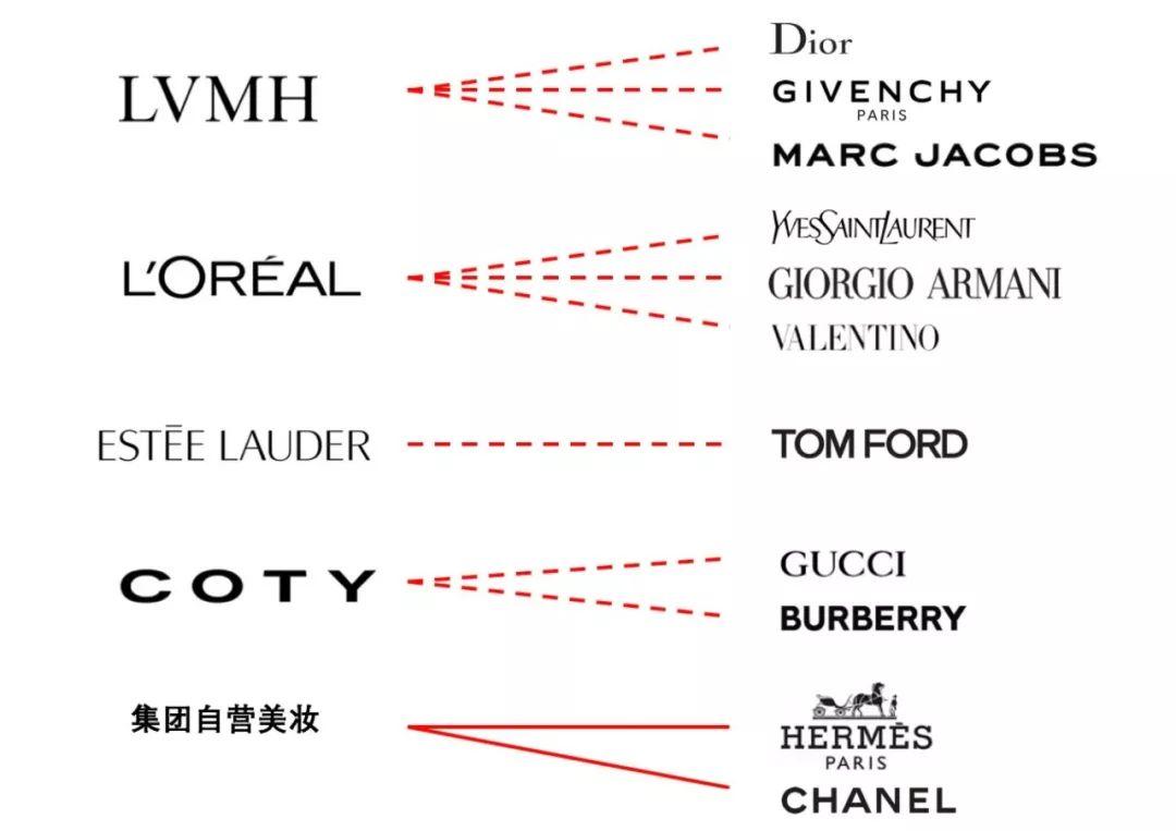 (各大奢侈品牌美妆业务线所属集团关系,图片来源自网络)