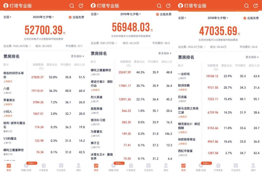 数据说话,先来看看今年七夕档整体成绩如何吧。