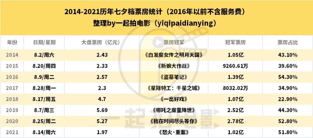 今年七夕档成绩如何?