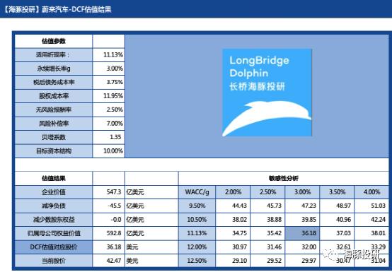 综上,根据蔚来汽车最新经营情况,我们更新了DCF模型,最新估值结果如下,供参考: