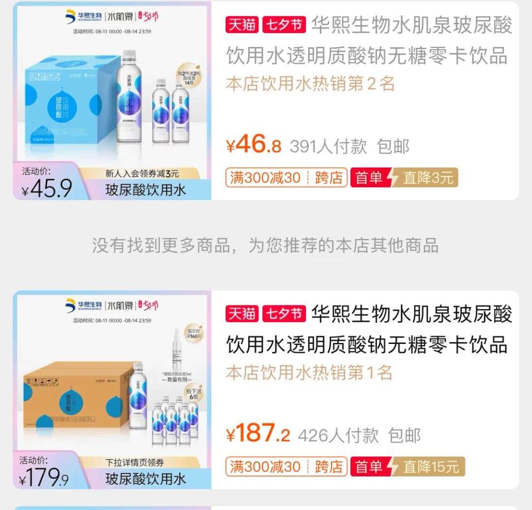 一瓶“水肌泉”透明质酸钠饮品,单售价 7.65 元,目前从天猫店看销量,还是有人在买单。口服玻尿酸原料价格也已经撑得起平价市场,更能让企业有利可图。