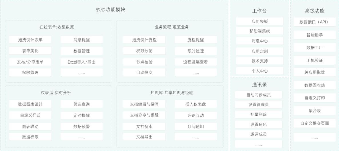 简道云作为一款主要面向业务人员的零代码开发的aPaaS平台,其核心价值就是在于能够帮助不同类型的客户通过零代码的方式快速搭建符合业务需求的各类管理应用(生产管理、进销存、考勤管理等),实现降本增效。简道云也一直将聚焦产品价值传递效率以及产品使用效率,更精准更充分的满足用户需求作为自身产品的立身之本。