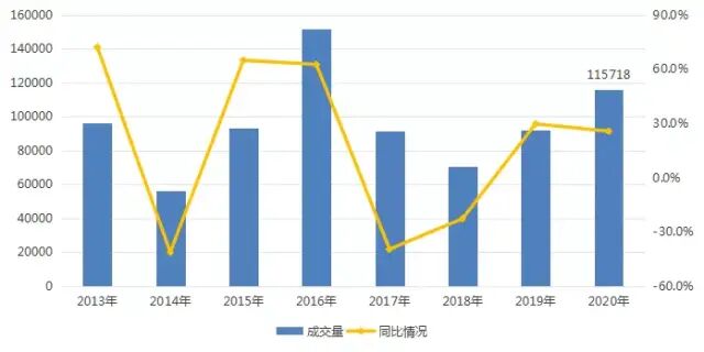 2013-2020年南京二手住宅成交量情况