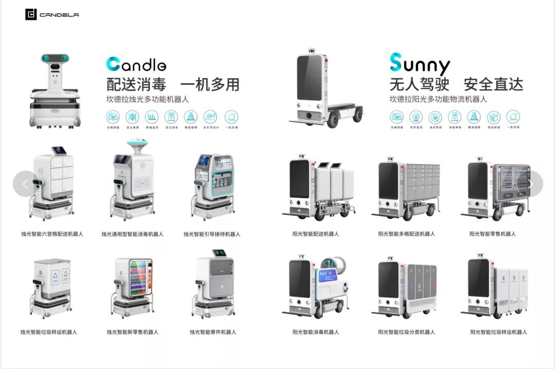坎德拉科技首创分体式机器人,通过自主切换功能模块,实现“一机多用”。用户场景广泛覆盖了商业综合体(写字楼/购物中心/超市/酒店等)医院、工厂、物流仓储、景区、机场、产业园区等。服务应用全面覆盖了物品配送、地面清洁、消毒喷雾、垃圾清运、接待指引、新零售、安全巡检等多种功能。