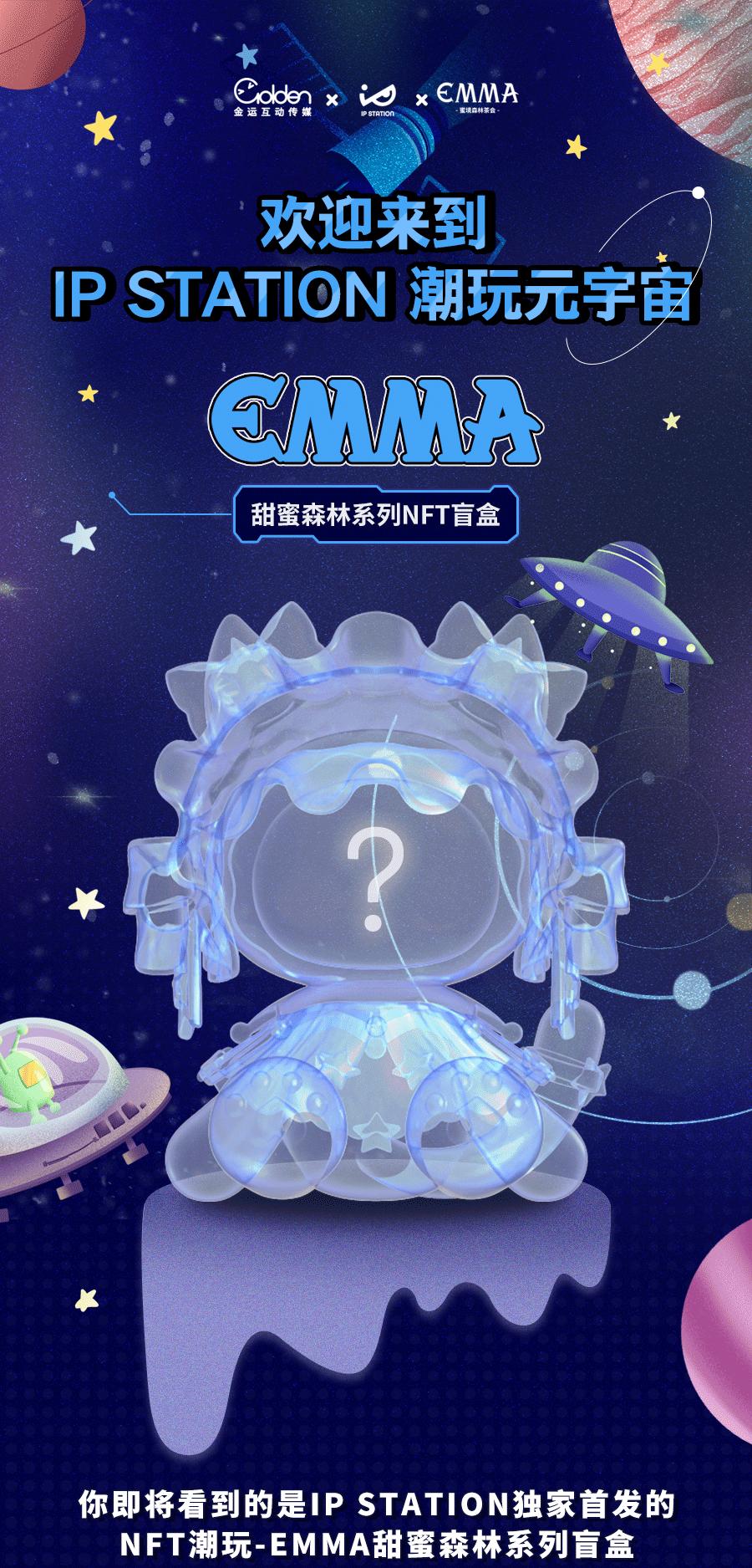 8月,潮玩互联网品牌 IP 小站也推出首款 NFT 盲盒——EMMA 甜蜜森林系列。据悉,用户只需购买一只实体玩偶,便能在 IP 小站 APP 内随机获得一款同系列的 NFT 数字艺术收藏品,在 IP 小站里还能进行潮玩交易。
