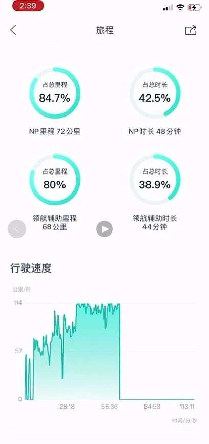 郑先生随后发给品玩/品驾的一段视频显示,事故车的最后一次驾驶里程为85公里。行驶数据视频显示,在此次时长为113分钟的行驶过程中,当事人平均速度为45.1公里/时、最高速度为114.6公里/时。