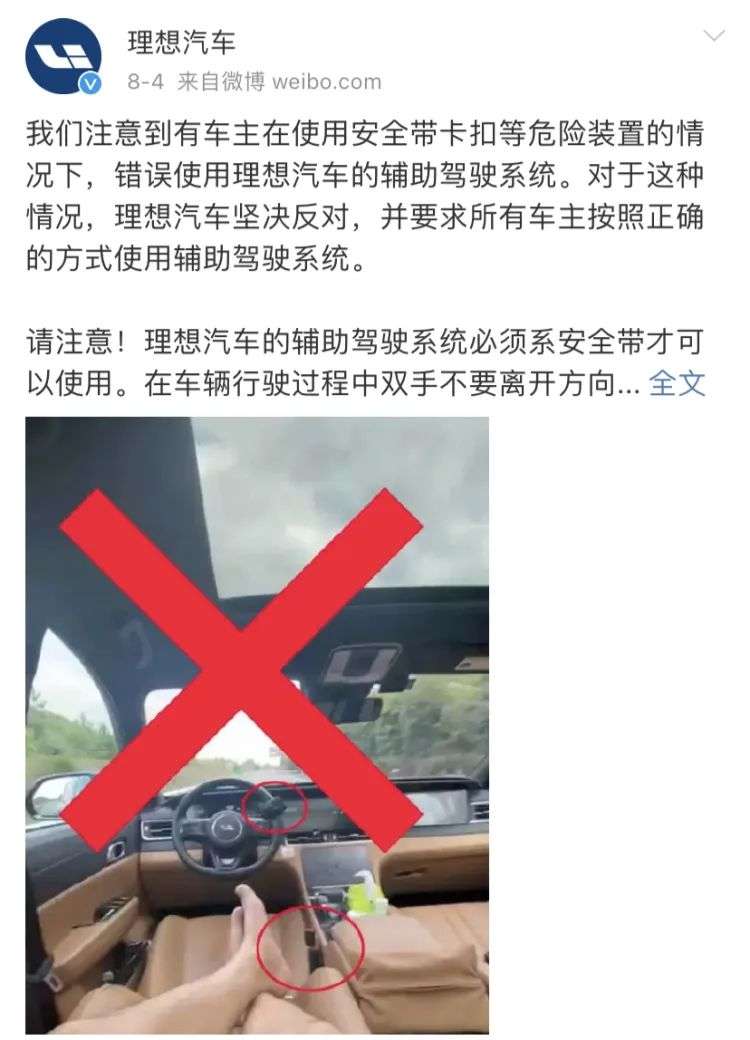 理想汽车官方微博对此视频还进行了回应:坚决反对错误使用辅助驾驶系统。