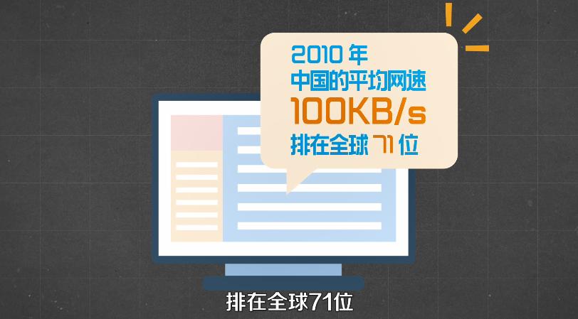 那一年,中国的平均网速是100KB/s,排在全球第71位 ,当年下载个魔兽,三天三夜才能下完。