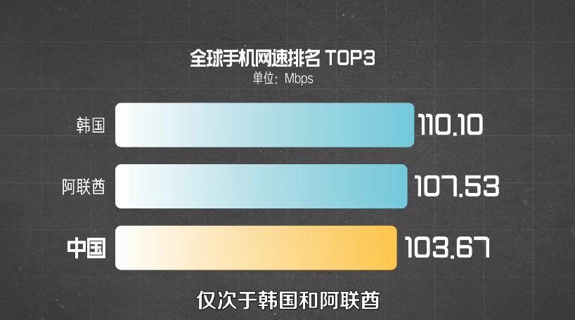而如今,中国手机网速排世界第三(103.67Mbps) ,仅次于韩国(110.10Mbps)和阿联酋(107.53Mbps)。下载高清视频,只需要在心里默数10个数。