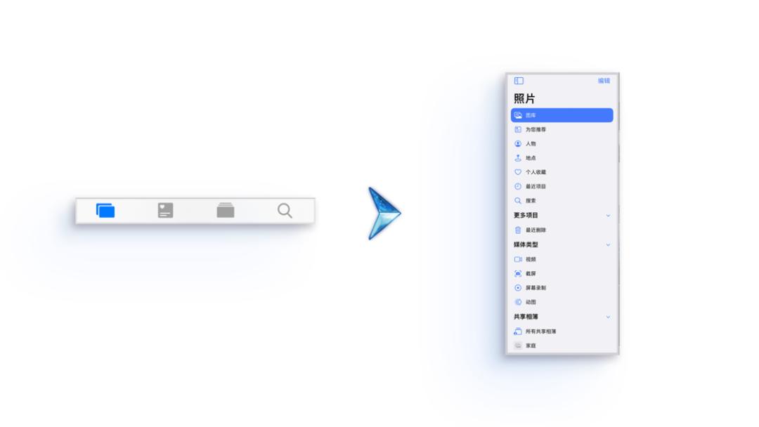 苹果对于 iPad 的生产力尤为看重。为了使 UI 设计在这一点上得到响应,从 iPadOS 14 开始,苹果开始大范围在内建 App 上采用「侧边栏」的设计,意图即是与 macOS 中的侧边栏统一,带来「更具生产力」的体验。