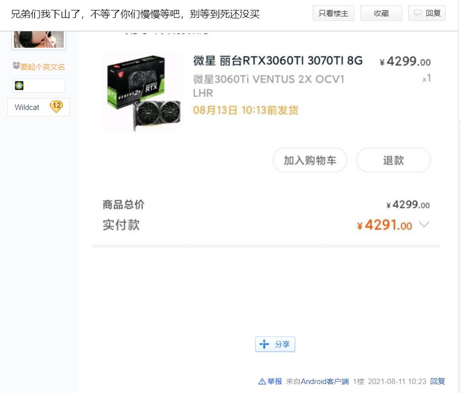 显卡价格的暴跌,DIY爱好者和玩家们自然是拍手称好,一部分早已按捺不住的网友甚至已经直接下单购买,毕竟相比起过去几个月的两倍溢价,现在仅10%-20%的溢价并不高,对于刚需玩家来说已经是可以入手的价格。
