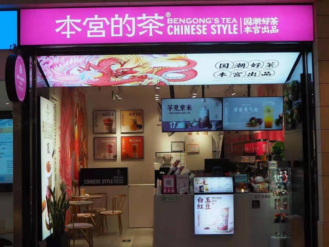 除红色外,选择紫色、绿色、黄色,蓝色等亮色的餐饮门店也越来越多。例如叁肆吾骨汤土豆粉是蓝色招牌,本宫的茶门头则是显眼的紫色,工长乐是以黄色为背景,搭配白色的发光字。观察可以发现茶饮品牌在颜色的运用上,往往更加肆无忌惮,设计多亮色。