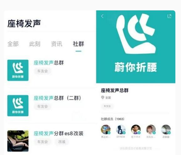对蔚来座椅设计不满的车主并不在少数,今年4月,蔚来APP上就出现针对座椅维权的社群,其成员高达1963人,这些车主的共同感受是开久了蔚来觉得自己腰疼,“腰与蔚来不可兼得”甚至出现了“蔚你折腰”的谐音梗,多才的网友还制作了令人捧腹的相关LOGO。