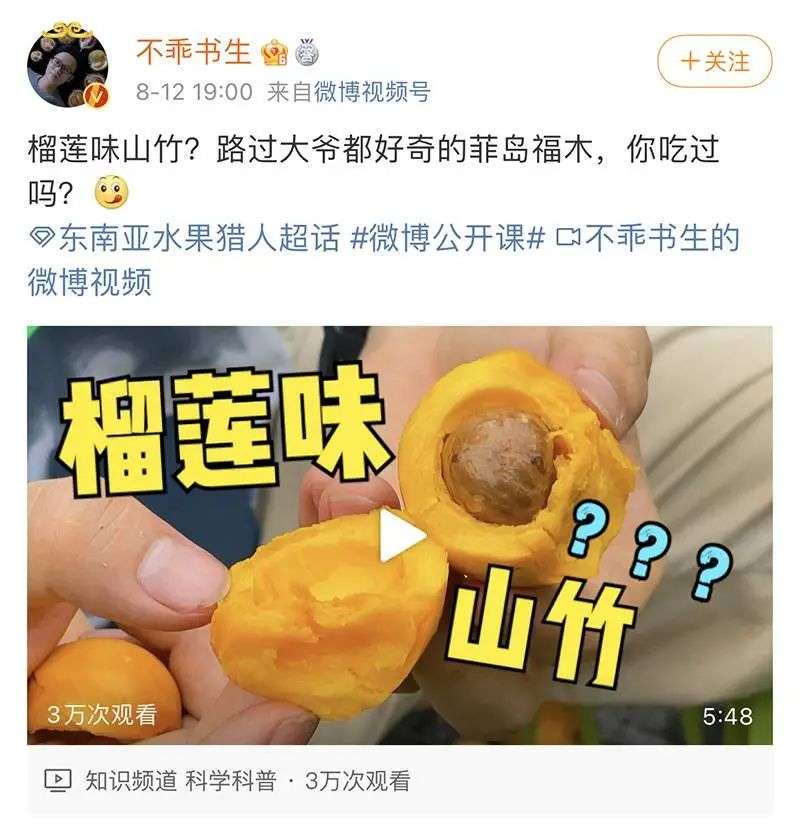 众所周知,微博是个「瓜田」。如何掌握吃瓜的正确姿势?@不乖书生可以教你。「榴莲味山竹是啥」「传说比猫山王还好吃的黑刺榴莲长什么样」「原来真的有北瓜」,这些可是货真价实的「吃瓜科普」。