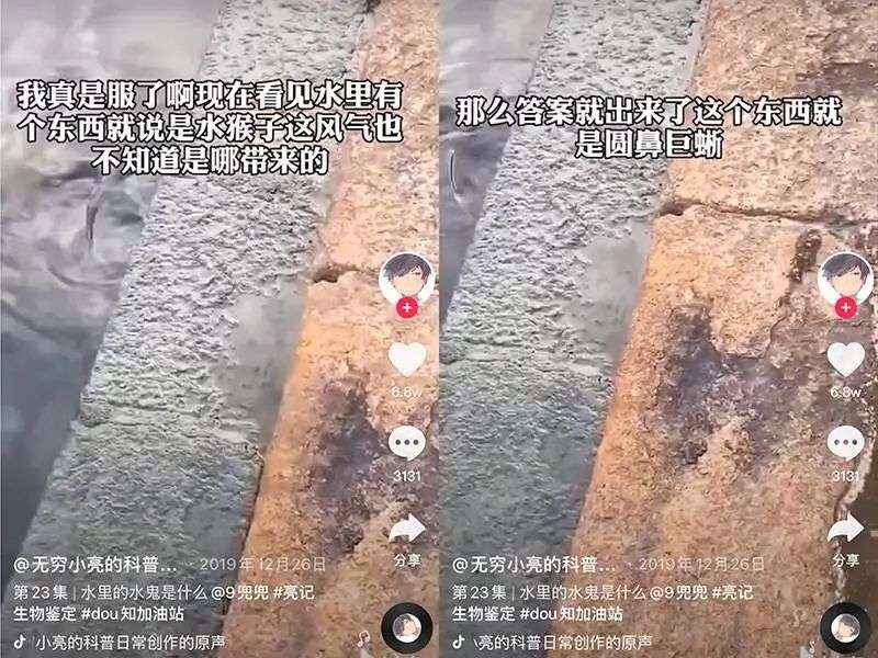 「水猴子」这个梗,则是因为网上总有人为了流量谎称发现了水猴子,每期「网络热门生物鉴定」视频都会以辟谣「水猴子」结尾。