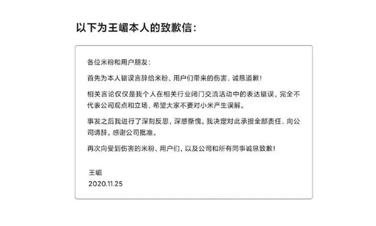 2020年11月21日,小米高管王嵋在2020中国人力资源管理年会——中国领先企业人才发展论坛上表示:“小米认为未来的天下,得屌丝者得天下,得年轻人得天下。”
