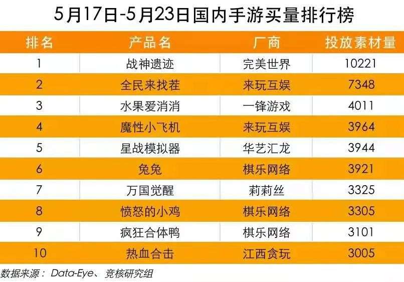 根据Data-Eye数据显示,《战神遗迹》上线首周在买量市场一骑绝尘,投放素材量高达10221组,位列买量榜榜首。