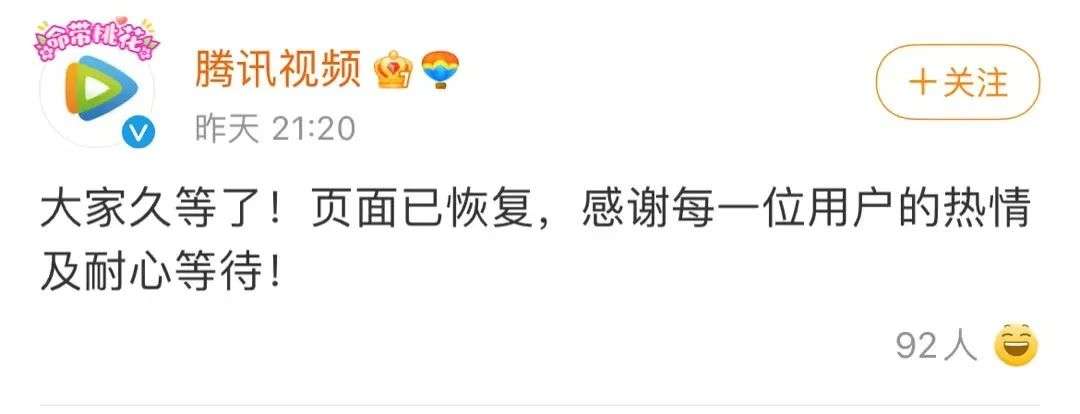 腾讯视频回应服务器崩溃:后台紧急扩容,目前已恢复