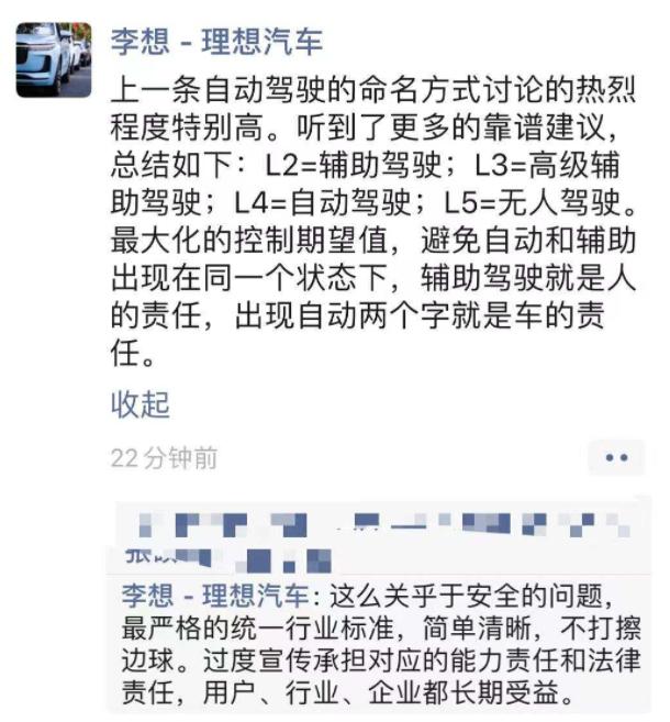 李想呼吁行业统一自动驾驶命名标准