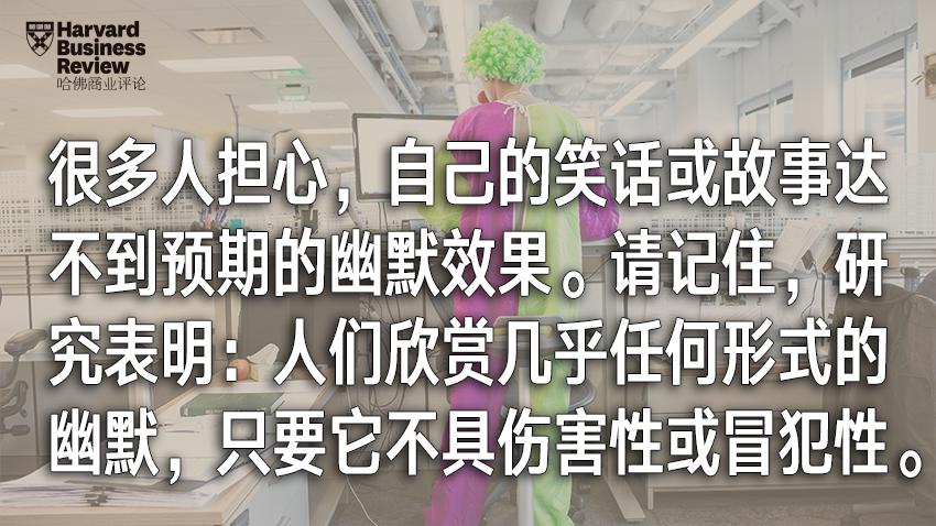 研究表明,幽默会让团队更敬业、更有创造力。你要认识到,每个人都有自己的幽默风格。很多人担心,自己的笑话或故事达不到预期的幽默效果。但是,请记住,研究表明:人们欣赏几乎任何形式的幽默,只要它不具伤害性或冒犯性。