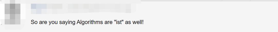 归根结底,算法背后是人,算法偏见背后其实就是人的偏见,算法的选择也就是在大数据处理之后人的选择。在针对相关现象进行批评时,更应需要关注现实中的偏见,保持内省。
