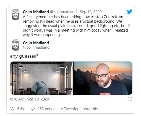 去年,一位推特用户试图发布他在Zoom的面部识别中注意到的一个问题,即在通话中没有显示出一位黑人同事的脸,当他发帖到Twitter上时,他注意到推特同样更偏向于他的脸而不是黑人同事的脸。