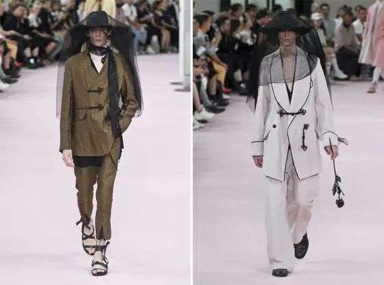 轻纱遮面等轻柔华丽的风格也在男装秀场中频繁出现。
