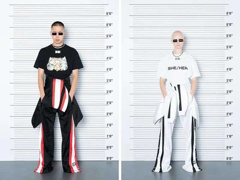 无独有偶,近日欧洲品牌 Vetements 打造了一个高端定位的新品牌 VTMNTS。VTMNTS 的定位是无性别服装,但根植于传统男装,女性模特的打扮更偏向男孩模样,男性模特整体服饰在廓形、印花、造型各方面都没有创新表现。